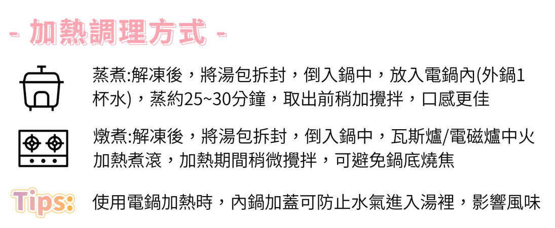 內容物:水、雞高湯(雞骨)、杏鮑菇、何首烏、枸杞、黑棗、川芎、當歸、熟地、肉桂、炙甘草、食鹽、調味劑
